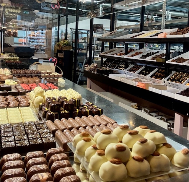 Een winkel vol met chocolade! Kom eens een bezoekje brengen aan onze winkel met de lekkerste chocolade producten. Een grote winkel met een uitgebreid assortiment en scherpe prijzen. We staan bekend om om onze handgemaakte bonbons, verse slagroomtruffels en heerlijke pindarotsjes in verschillende smaken. Denk verder nog aan dunne krokante chocolade blaadjes, musketflikken, caramel-zeezout, krakelingen, vrolijke chocolade figuurtjes, mokkastaafjes, boomschors, orangettes, geboorte chocolaatjes en nog veeeeel meer.